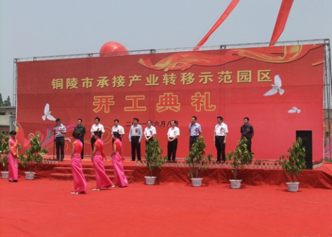 2011年6月8日上午陽光和煦、微風(fēng)徐徐,東聯(lián)鄉(xiāng)永太路施工現(xiàn)場(chǎng)花團(tuán)錦簇,彩旗飄揚(yáng)。銅陵市承接產(chǎn)業(yè)轉(zhuǎn)移示范園區(qū)工程建設(shè)開工奠基儀式在這里隆重舉行。