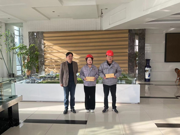 日前,財(cái)務(wù)部倉庫員工周陵元、賀慧玲在工作中堅(jiān)持原則、甘于奉獻(xiàn),較好地體現(xiàn)了員工的“主人翁”責(zé)任感以及“以廠為家”的精神,及時堵塞公司管理漏洞,摒棄不正之風(fēng)。經(jīng)公司決定:分別給予周陵元1000元人民幣、賀慧玲500元人民幣的現(xiàn)金獎勵。 2023年11月15日下午3時,公司總經(jīng)理張啟明向受到表彰的周陵元、賀慧玲給予現(xiàn)金獎勵,并與他們合影留念。 |